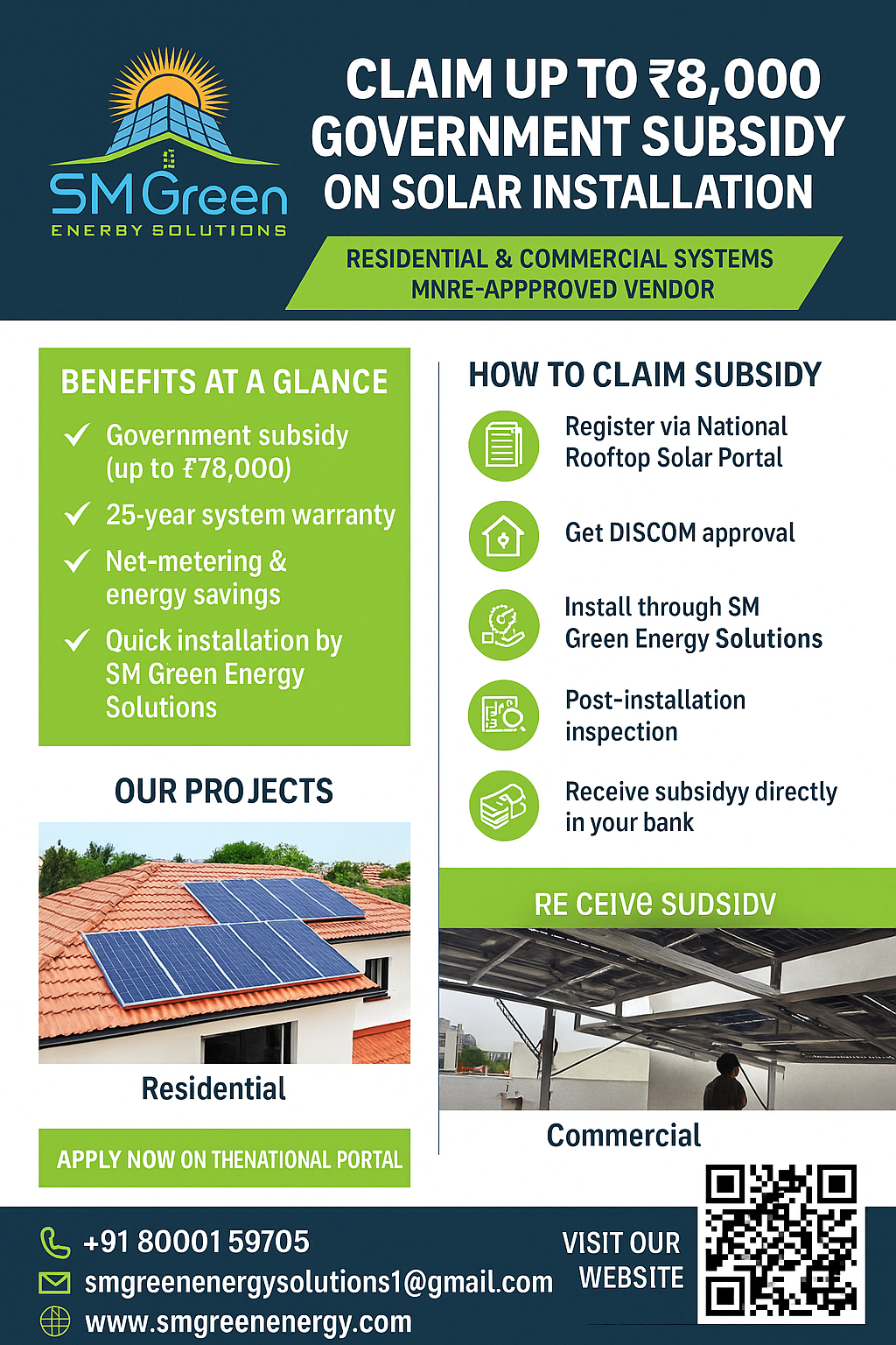SM GREEN ENERGY SOLUTIONS Main Office sm green energy Near Pankha Circle , Churu Make a Call +918000159705 Mon - Sat: 09am - 08pm Send a Mail smgreenenergysolutions1@gmail.com